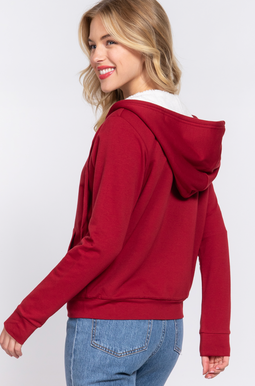- LONG SLEEVE INNER FAUX FUR ZIP-UP HOODIE FRENCH TERRY JACKET