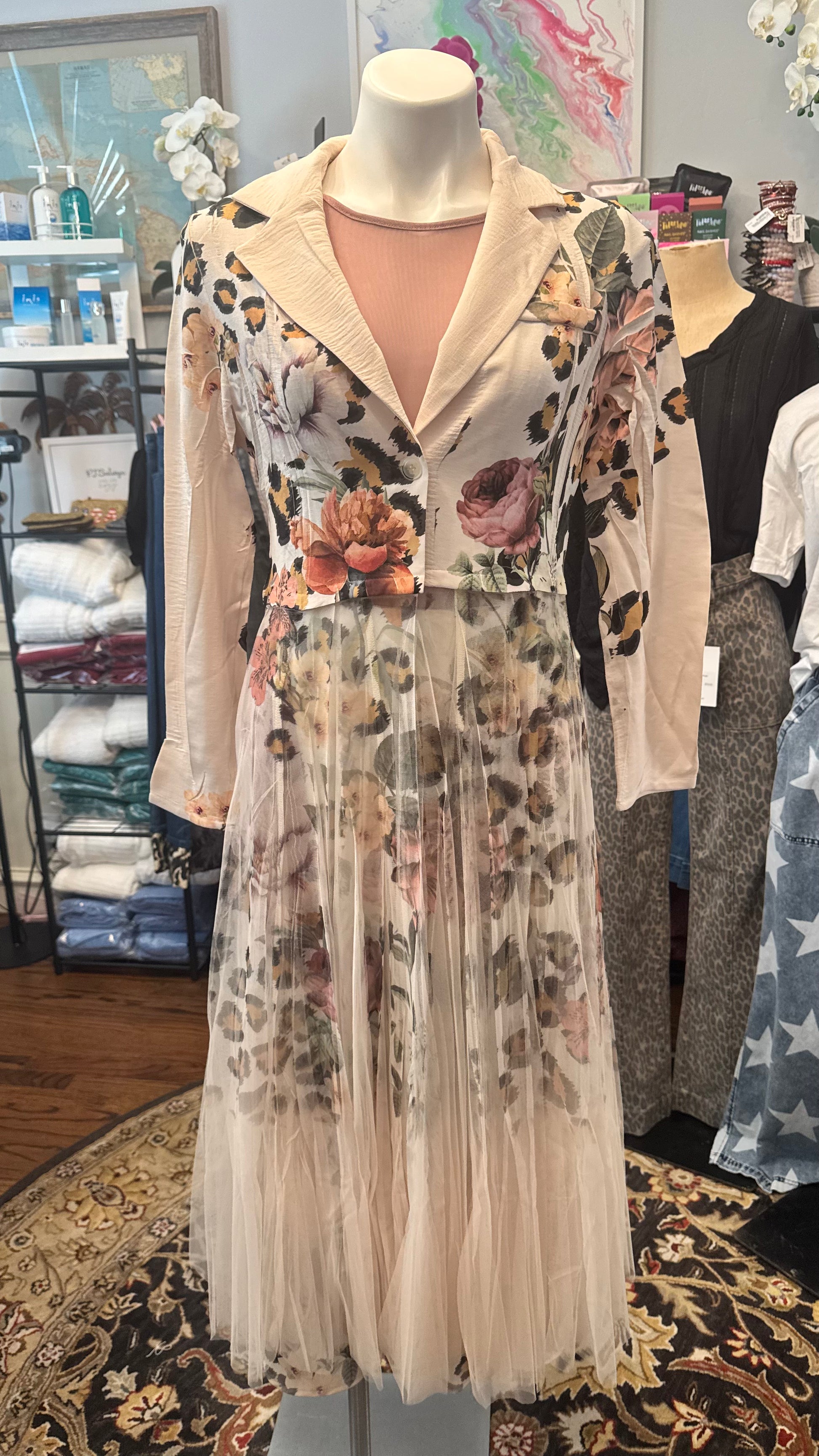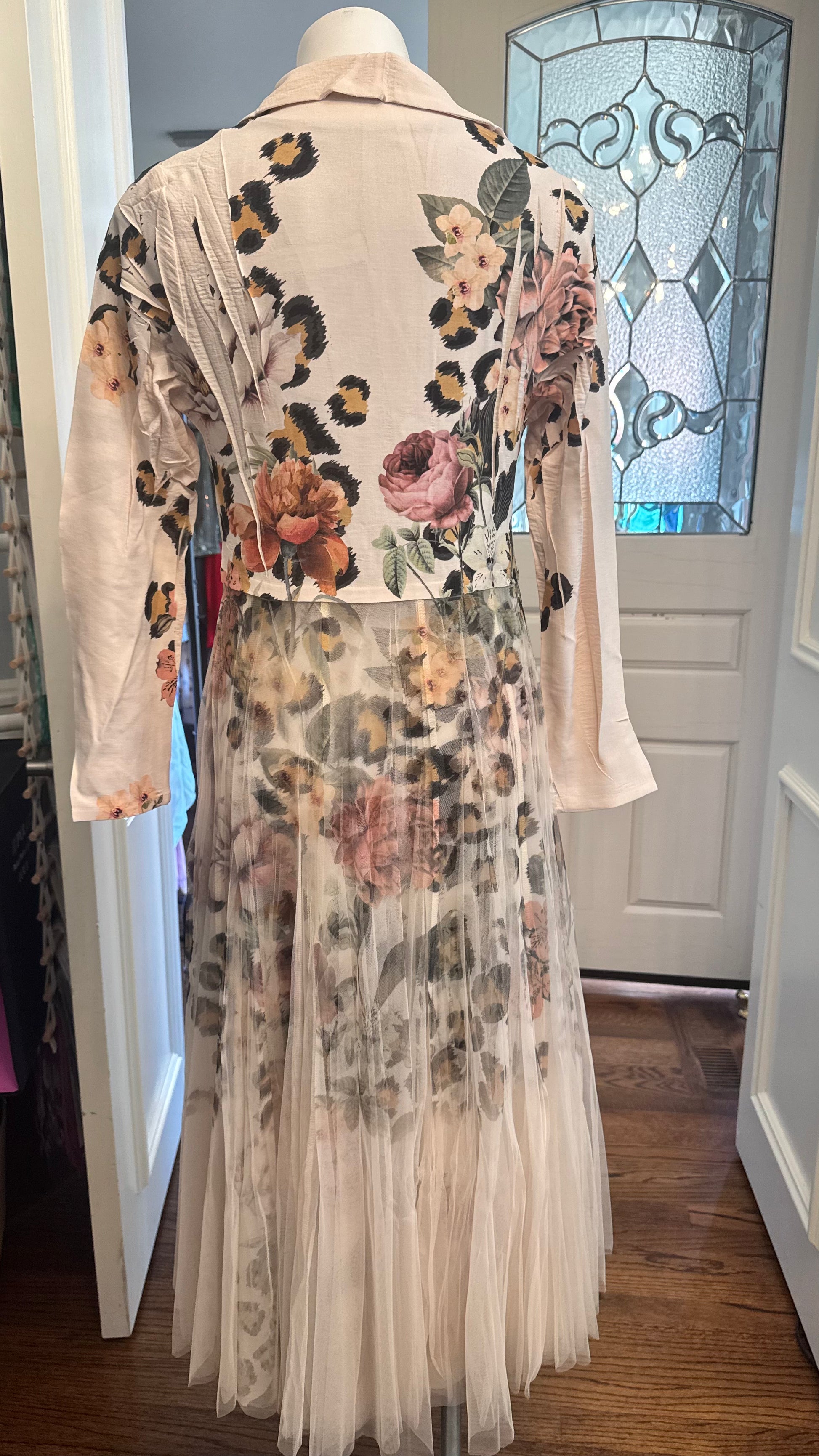 Isabella Cardigan Blazer with Mesh Tulle Panel Leopard Floral