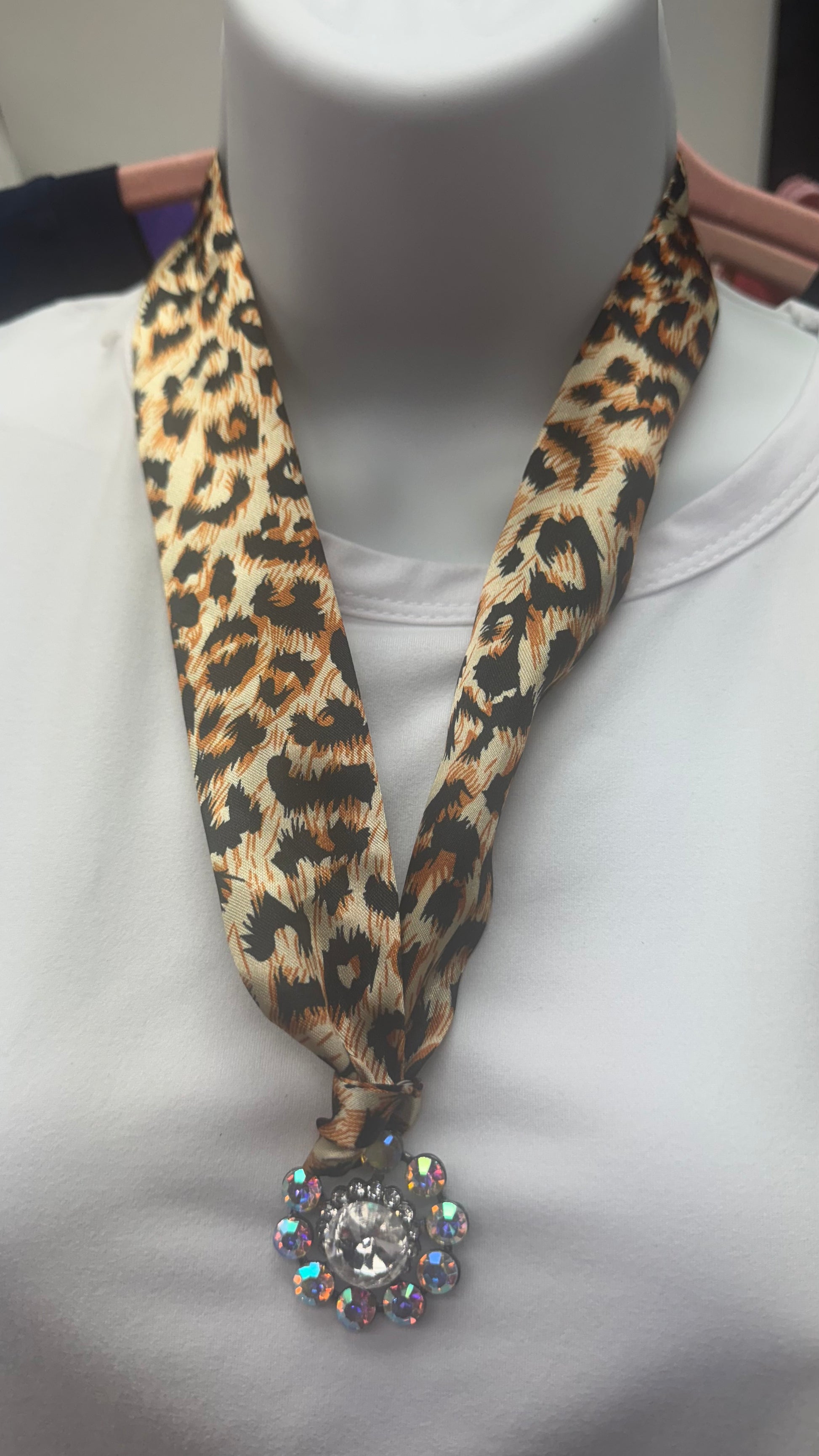 N111 Leopard Twilly Scarf Necklace with Flower Pendant